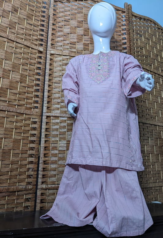 Girls lilac lawn self printed and embroidered kurta with stylish loose pants