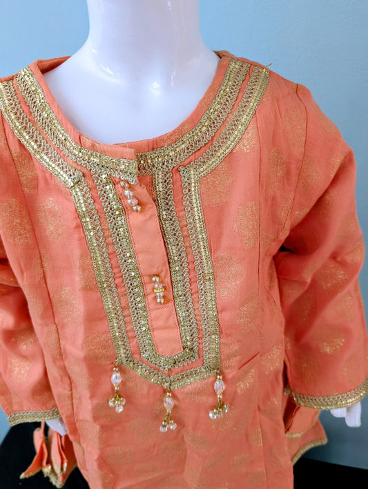 Girls black and golden contrast crush gharara set (sleeves included but not attached)