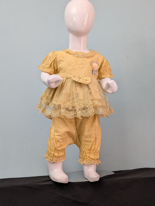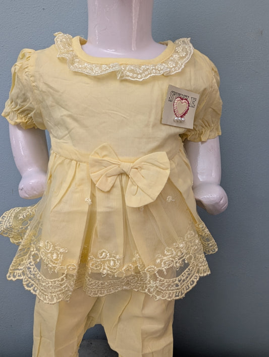 Girls lawn floral summery peplum frock with gharara style pants and yellow dupatta