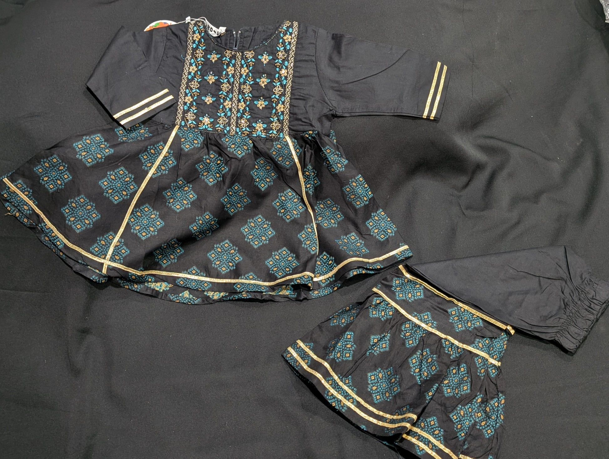 Girls' cotton self-printed embroidered and gotta work frocks and gharara sets (available in two colors).