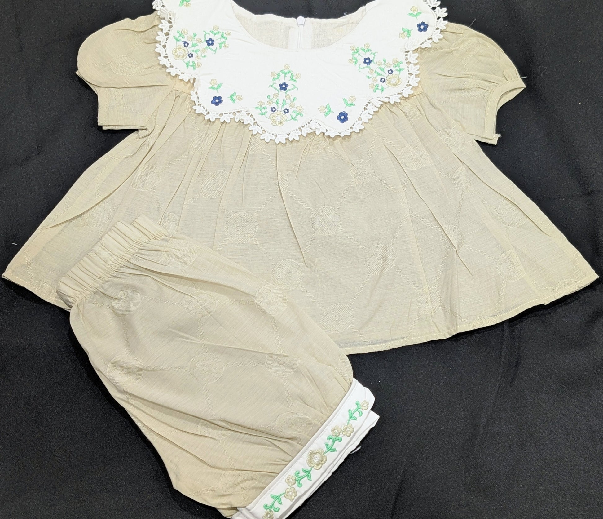 Stylish cotton embroidered frock and pajama sets for baby girls